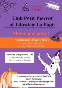 Booking is mandatory: send us an email at admin@clubpetitpierrot.co.uk