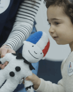 - Understand and respond to common phrases (Comment ça va ?, Où est Pierrot ?): our structured sessions always start with a welcoming part, with songs and rhymes, the arrival of Petit Pierrot greeting the group and introducing the theme of the day.