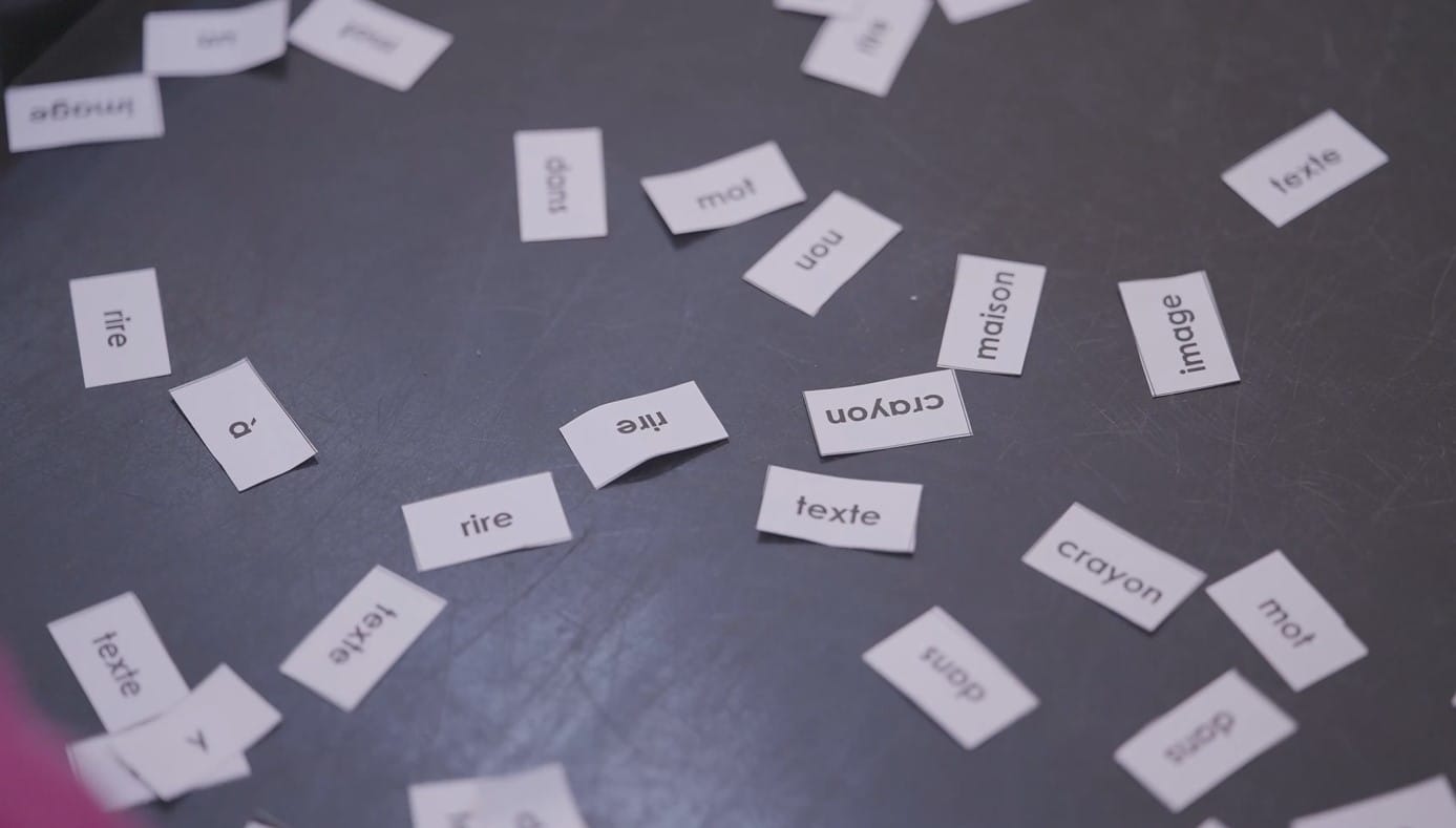 Lessons includes activities for learning reading & writing in French, alongside ongoing vocabulary expansion and comprehension enhancement. Children engage in reading tasks, complete worksheets, participate in spelling and grammar games.